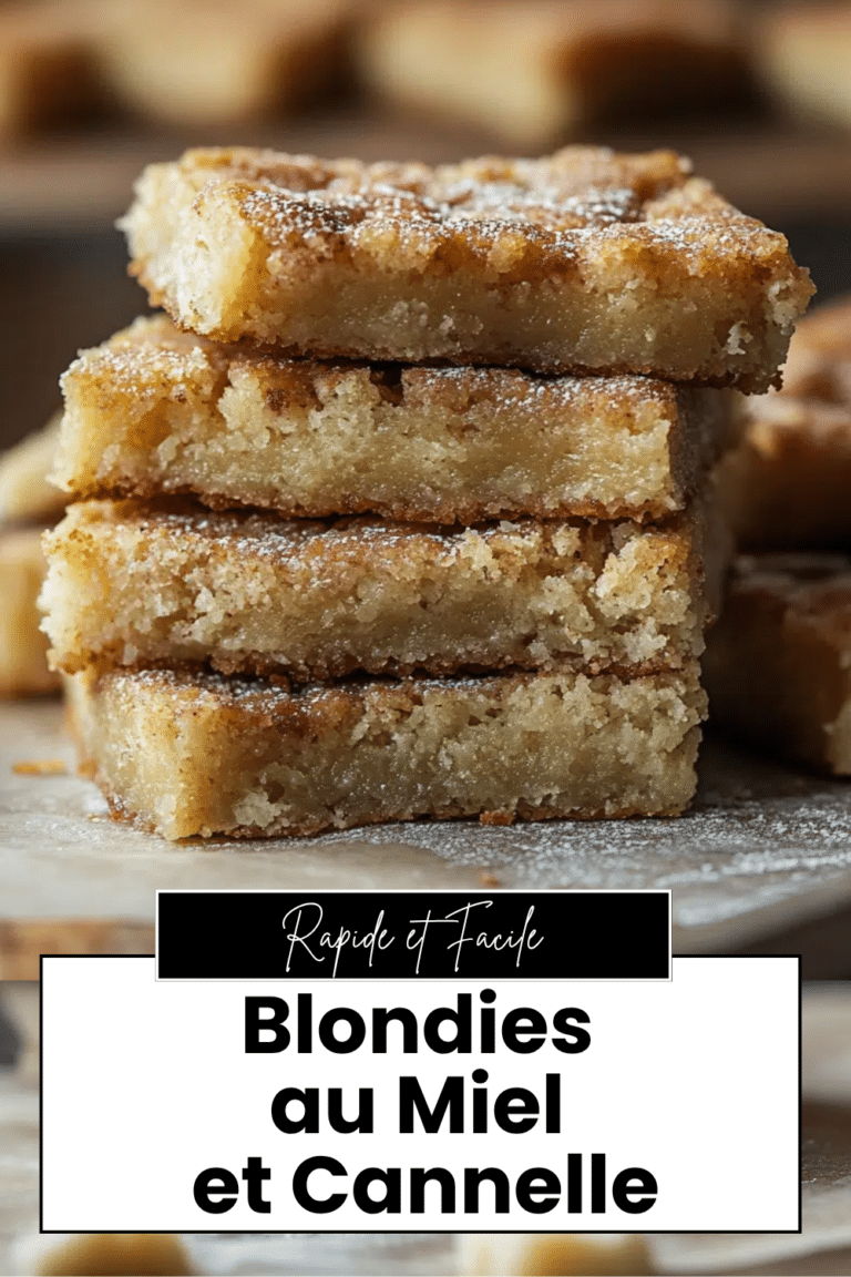 Blondies fondants au miel et à la cannelle avec un croustillant sucre-cannelle. Un dessert réconfortant prêt en 35 minutes avec un seul bol.