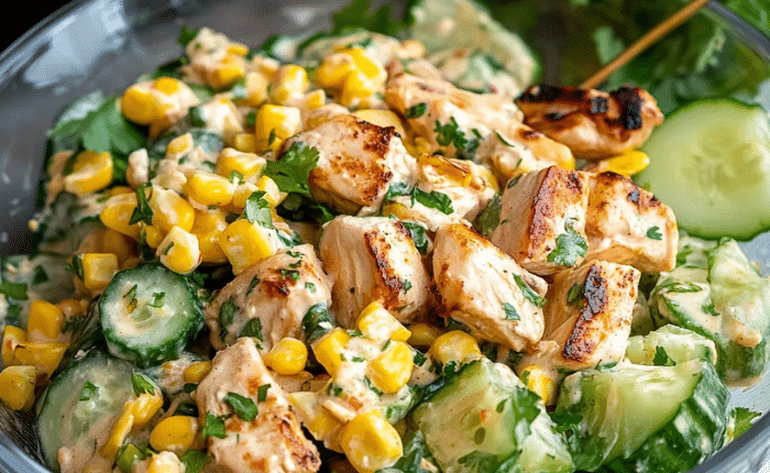 Cette salade poulet concombre maïs grillé façon street corn, c’est …