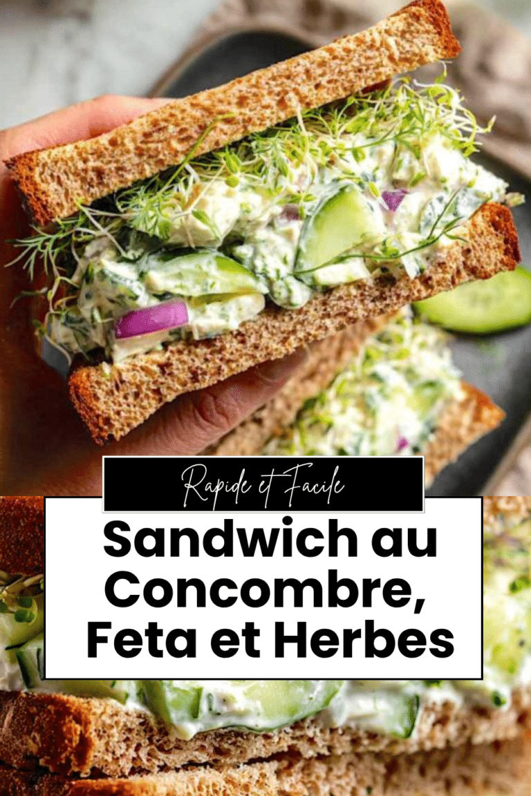 Un sandwich frais, léger et croquant qui se prépare en 15 minutes sans aucune cuisson. Du concombre croquant mariné au sel, mélangé à un appareil crémeux au yaourt grec, feta émiettée, aneth, ciboulette et zeste de citron — le tout assemblé sur du pain complet grillé avec des pousses croquantes et une fine rondelle d’oignon rouge. C’est le déjeuner parfait pour les journées chaudes, un pique-nique improvisé ou quand on veut manger léger sans sacrifier le goût. Frais, rassasiant et plein de saveurs, il ne vous laissera pas en panne d’énergie à 15h.